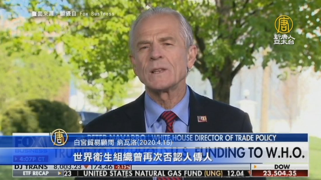 美國有超過64萬人確診中共肺炎,超過2.8萬人死亡, 白宮15日發出新聞稿,說明美國追究世衛在中共肺炎疫情中的責任,文中提到,台灣在去年12月31日發現病毒有人傳人訊息,但世衛卻沒有將這項消息公開。白宮貿易顧問納瓦洛直指,世衛雙手染血。 //asset1.ntdtv.com.tw/public/uploads/assets/2020/04/16/2020-04-16-5e984daf9e598.mp4 中共肺炎|武漢肺炎|疫情|防疫|中共病毒|新型冠狀病毒|解封2020-04-16 20:18:31