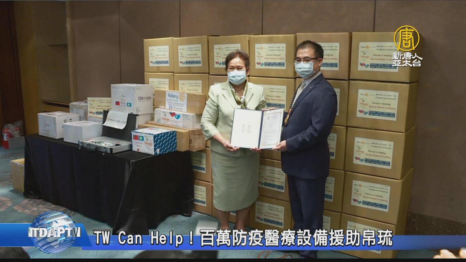 中共疫情肆虐全球,台灣政府日前協助太平洋友邦帛琉,提供檢測儀器等醫療物資,而台灣民間團體也攜手合作,提供抽痰機、呼吸器等設備,總價值達新台幣100多萬元的醫療物資,援助邦交國帛琉,以具體行動實踐,Taiwan Can Help(台灣能幫忙),Taiwan is helping(台灣正在幫忙),這句標語。 //asset1.ntdtv.com.tw/public/uploads/assets/2020/04/16/2020-04-16-5e98581509a5f.mp4 中共肺炎|帛琉|醫療物資|扶輪社2020-04-16 21:01:39