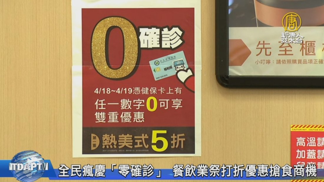 中共肺炎疫情全球持續延燒,不過就在16、17日連續兩天,疫情指揮中心指揮官陳時中宣布沒有新增確診個案,這個消息讓全民都開心到瘋了,更有不少餐飲業者跳出來慶祝,紛紛祭出加碼買一送一,或是打折的優惠,只要出示身份證件,號碼有「零」的民眾,就能享有優惠。 //asset2.ntdtv.com.tw/public/uploads/assets/2020/04/18/2020-04-18-5e9afb4510d0e.mp4 中共肺炎|零確診|優惠|餐飲業|超商|超市|武漢肺炎|疫情|防疫|中共病毒|新型冠狀病毒2020-04-18 21:01:45