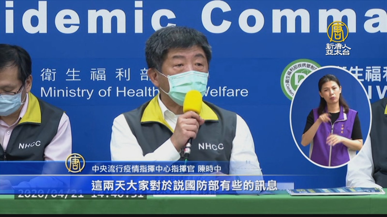 好,磐石號軍艦爆發艦上群聚感染,受到關注。不過今天(21日)中央疫情記者會,卻沒有軍方人員列席,對此陳時中為軍方緩頰,表示國防部任務很多,並且要準備立法院備詢,請外界體諒。另外,有媒體指出,指揮中心和國防部溝通沒做好,造成防疫漏洞,是否要將指揮中心升級到行政院層級。 //asset2.ntdtv.com.tw/public/uploads/assets/2020/04/21/2020-04-21-5e9ee3fc40cb3.mp4 武漢肺炎|防疫|疫情|中共肺炎|磐石號|國防部|陳時中|指揮中心2020-04-21 20:11:44