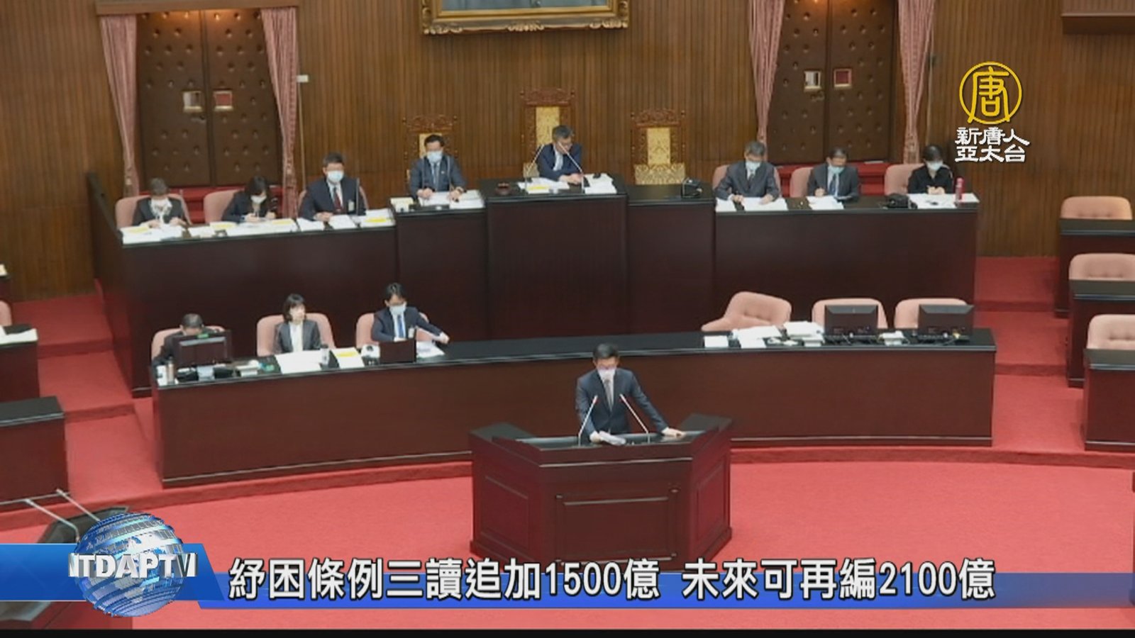 台灣立法院,今天(21日)三讀通過「防治及紓困振興特別條例」修正案。除了原本600億新台幣,追加1500億元。朝野攻防聚焦。第一,國民黨主張以排富條件,發放現金一千億救急,條款沒有通過;第二是民進黨主張,讓行政院考量疫情,以不超原額度再編預算,等同合計最高可達4200億空間。 //asset1.ntdtv.com.tw/public/uploads/assets/2020/04/21/2020-04-21-5e9ee65bb28a3.mp4 中共肺炎|武漢肺炎|特別預算|發現金|紓困與振興特別條例2020-04-21 20:25:12