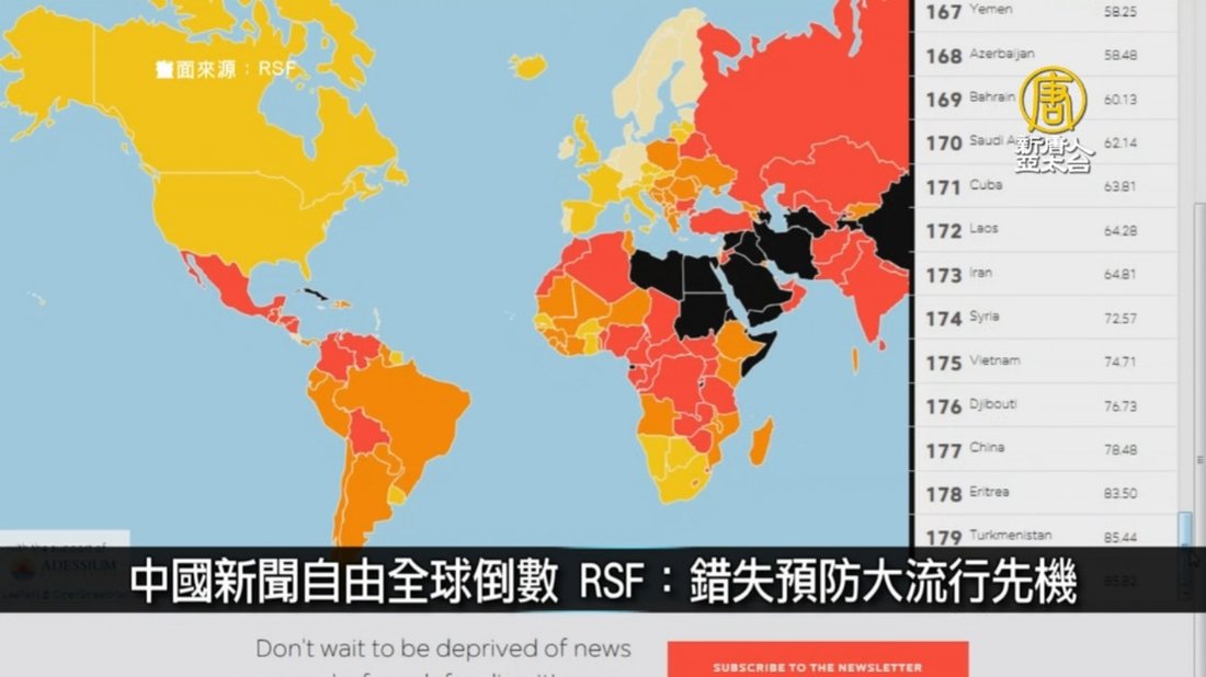 中國新聞自由全球倒數 RSF:錯失預防大流行先機|中國一分鐘