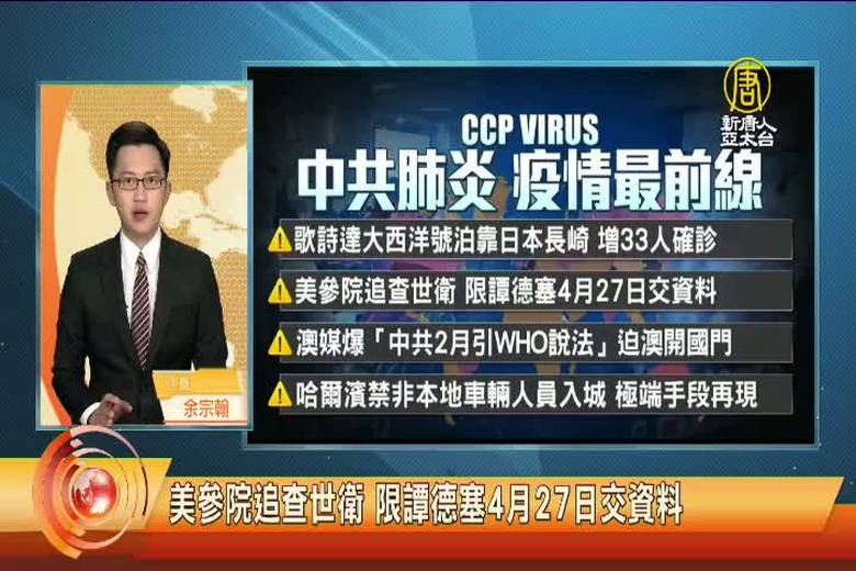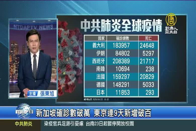 新聞首先馬上帶您來瀏覽,今天的重要疫情發展。台灣敦睦艦隊再有1實習生在第二次採驗時確診,3月底曾發燒。日本東京連9天新增確診破百例,8名嬰幼兒群聚確診。義大利新增確診和死亡病例,今天再度上揚。全球累計已經超過255萬確診,中共、伊朗數據被質疑嚴重低估,美國確診已達到81萬。 //asset2.ntdtv.com.tw/public/uploads/assets/2020/04/22/2020-04-22-5ea033aaeb213.mp4 敦睦艦隊|中共肺炎|武漢肺炎|疫情|防疫|中共病毒|新型冠狀病毒2020-04-23 15:13:50