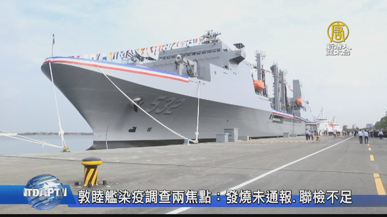 帶您關心敦睦艦隊磐石號,今天(23日)再新增一人確診。指揮中心指出,個案是經過潛伏期後,出現症狀,才採檢確診。目前,敦睦艦隊專案匡列的接觸者人數,已經增加到1237人,指揮中心也持續在網路上,公佈個案足跡,盼全面防堵疫情,另外,針對確診者的家庭接觸者,在居家隔離5天後將全面接受採檢。 //asset2.ntdtv.com.tw/public/uploads/assets/2020/04/23/2020-04-23-5ea186893883c.mp4 武漢肺炎|防疫|疫情|中共肺炎|磐石號|敦睦艦隊|疫調|抗體2020-04-23 20:10:56