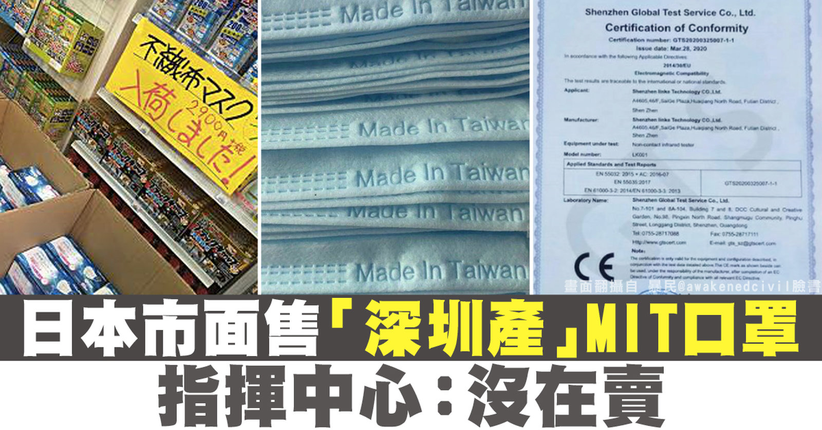 日本市面售「深圳產」MIT口罩 指揮中心:沒在賣