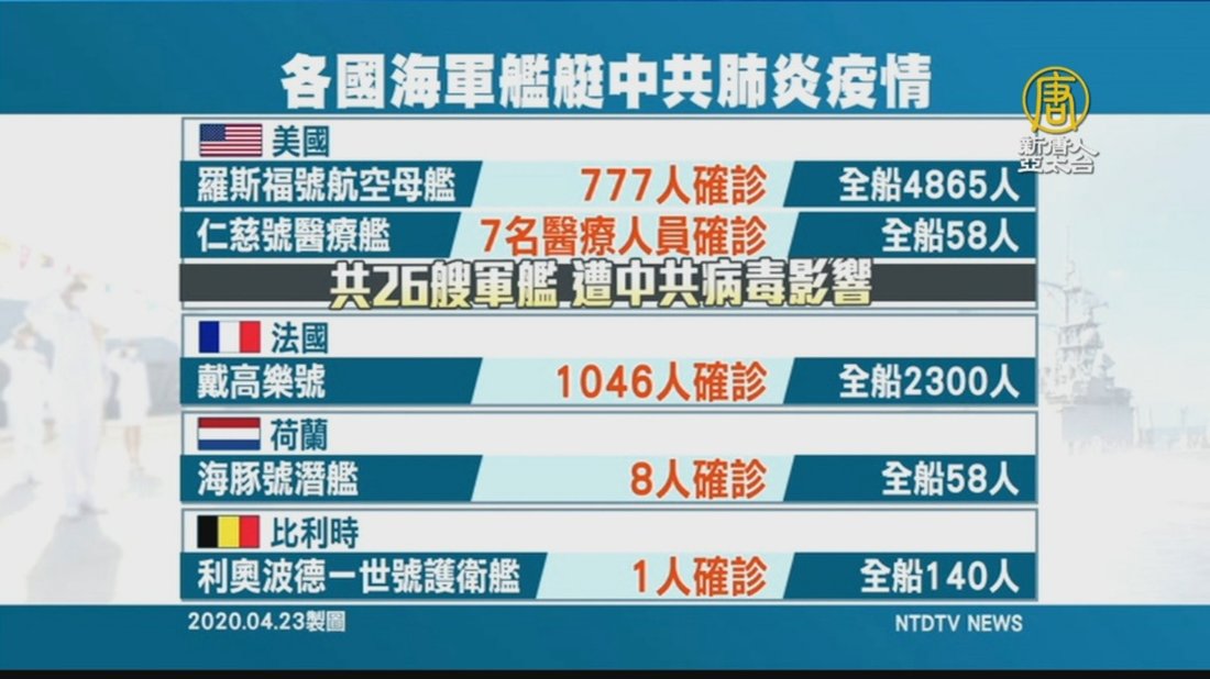 帶您看到各國軍艦感染中共肺炎的情況,美國海軍即將公布,遭解職的美國羅斯福號前艦長克勞齊上校,是否復職或調職以及調查報告。而羅斯福號截至今天,已經有99%的人員接受病毒測試,共有777例呈現陽性。其次嚴重的是仁慈號醫療艦(USNS Mercy),有7名醫療人員遭感染,根據CNN報導,目前美方受到中共病毒影響的軍艦共有26艘,但仍有297艘軍艦處於服役狀態。在歐洲,法國戴高樂號,軍方最終評估有1046人確診。而荷蘭的「海豚號」潛艦(HNLMS Dolfijn),也有8名船員確診。比利時的利奧波德一世號 護衛艦 //asset3.ntdtv.com.tw/public/uploads/assets/2020/04/23/2020-04-23-5ea195b26e909.mp4 中共肺炎|武漢肺炎|疫情|防疫|新型冠狀病毒|羅斯福號|戴高樂號|海軍2020-04-23 21:18:42