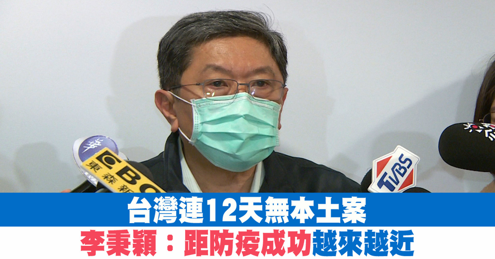 台灣連12天無本土案 李秉穎:距防疫成功越來越近