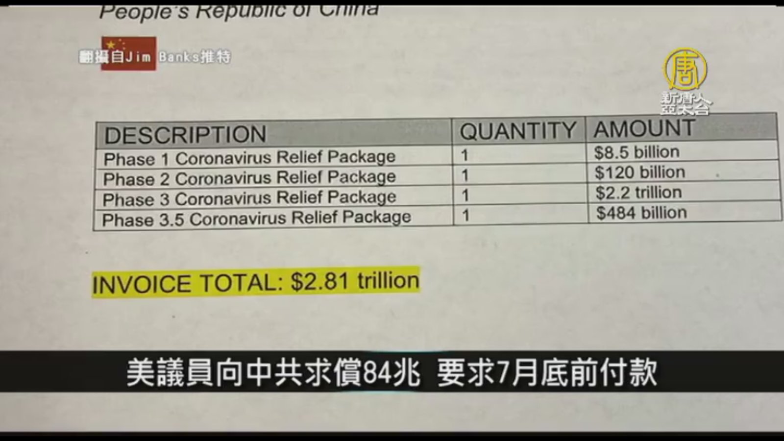 美議員向中共求償84兆 要求7月底前付款│中國一分鐘|中國一分鐘
