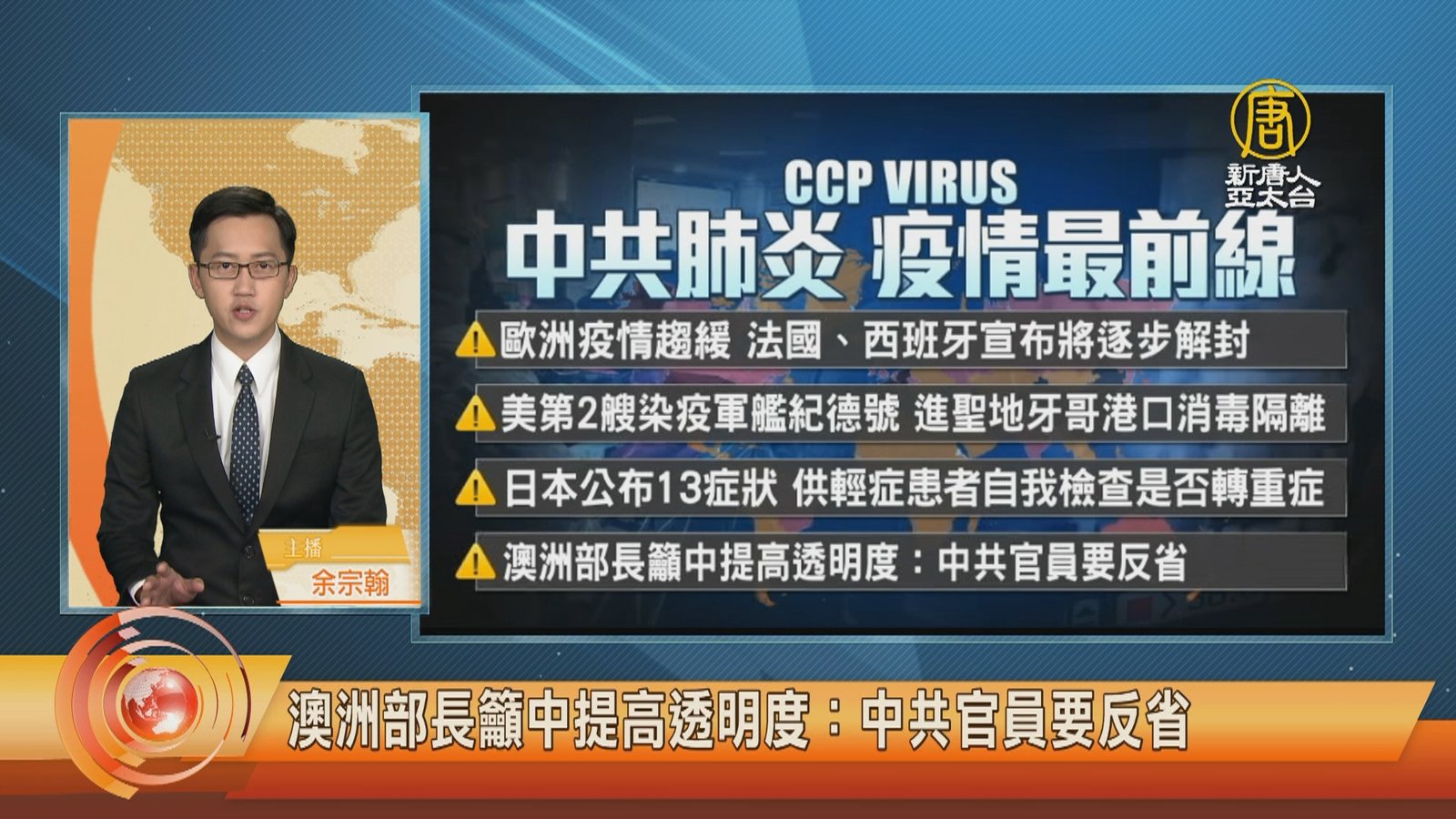 來關注國際持續追責中共,最近外媒報導,「五眼聯盟」美英加澳紐的情報機構將調查,中共武漢實驗室的兩名研究員。澳洲政府高層頻頻喊話公開透明的調查疫情,中共卻以經濟威脅、阻止調查。美國參議員聲援澳洲,質疑中共,如果沒什麼可隱瞞的,為什麼要大動作威脅澳洲? //asset1.ntdtv.com.tw/public/uploads/assets/2020/04/29/2020-04-29-5ea97a188c546.mp4 中共肺炎|武漢肺炎|中共病毒|新型冠狀病毒|澳洲|五眼聯盟|武漢實驗室2020-04-29 21:04:32