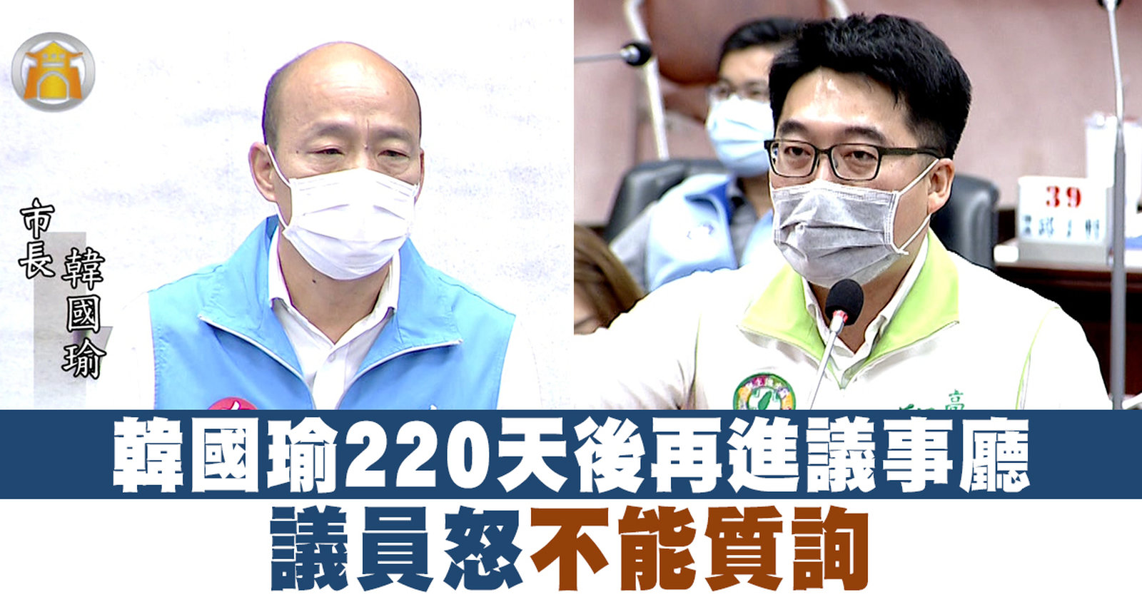歡迎回來,高雄巿議會今天舉行臨時會,高雄巿長韓國瑜親赴議會針對疫情應變做報告,不過國民黨團利用人數優勢提案,決議只有黨團能在臨時會質詢,排擠時代力量市議員黃捷等人的質詢權。 //asset1.ntdtv.com.tw/public/uploads/assets/2020/05/04/2020-05-04-5eb0122f2c35f.mp4 韓國瑜|高雄市議會|質詢|罷免|時代力量2020-05-04 21:00:34