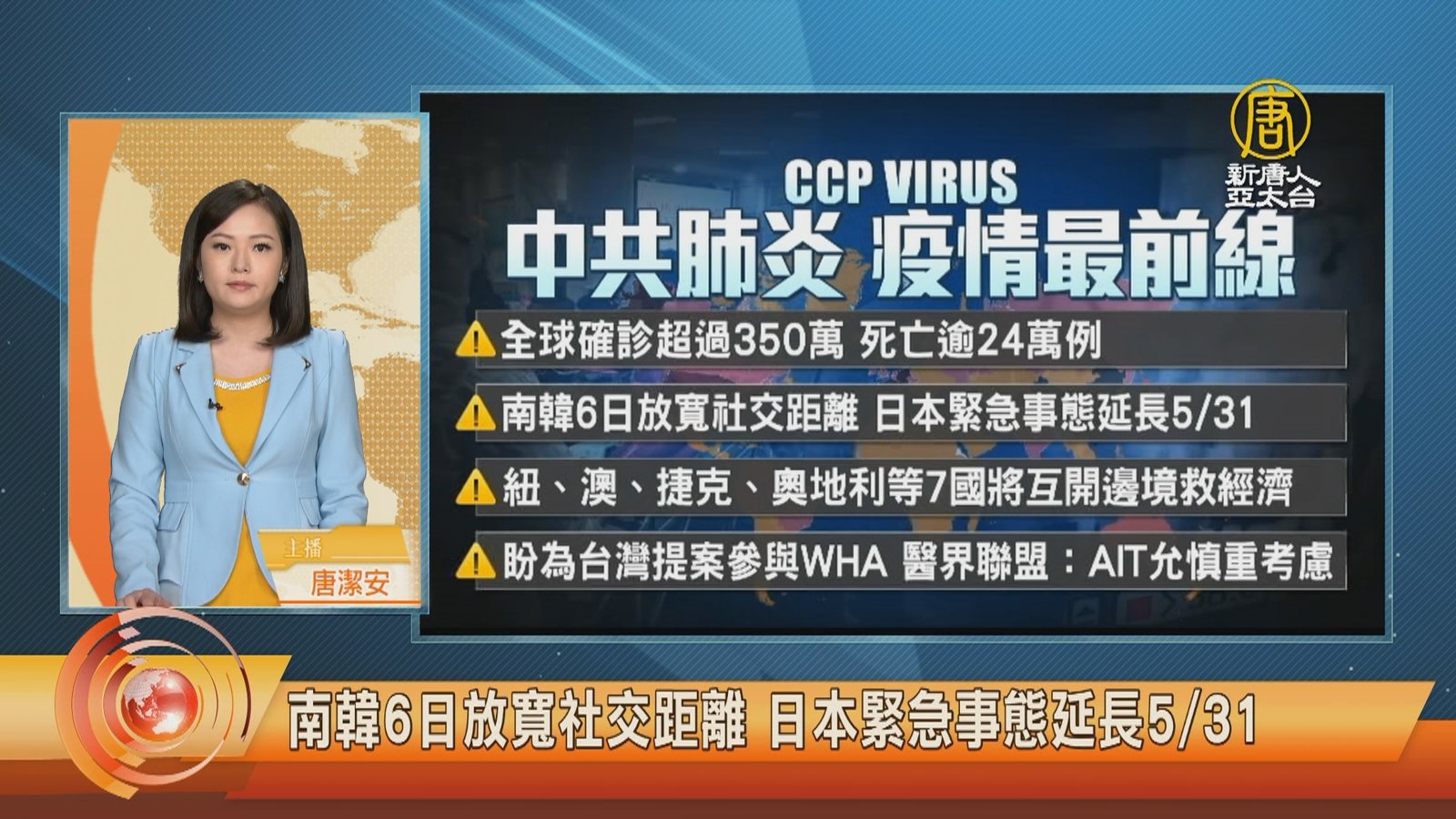 中共肺炎疫情持續肆虐全球190國,全球確診突破352萬!帶您瀏覽疫情重點,台灣今天新增1例境外移入,磐石艦也新增1人確診。目前已經連續22天沒有本土病例。日本宣布全國緊急狀態延至5月底,俄羅斯疫情失控!連2天新增確診突破萬人。傳出美國川普政府正「加速推進」將美國工業供應鏈遷出中國計畫,並考慮用加徵新的關稅,制裁中共。大陸廣州近日發現多起病例,跡象顯示已發生群聚感染,且出現「跨市和跨省」擴散的現象。 //asset2.ntdtv.com.tw/public/uploads/assets/2020/05/04/2020-05-04-5eb014ca3a9c3.mp4 中共肺炎|武漢肺炎|疫情|防疫|中共病毒|新型冠狀病毒2020-05-04 21:12:42