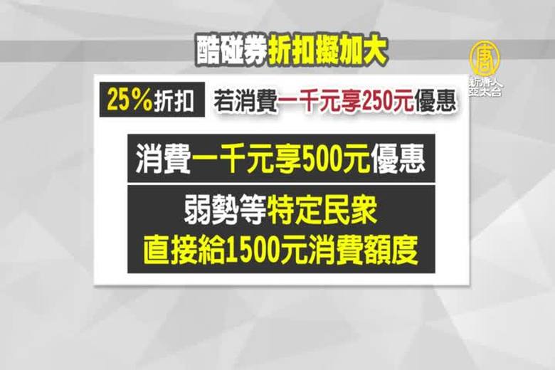 酷碰券綁行動支付,遭批難以普及,現在經濟部長沈榮津鬆口,方案將大改版,預計推出「實體券」,同時也會搭配電子支付、電子票證並行,另外,傳出折扣也將再加碼,每人消費1000元,政府提供500元的折扣,弱勢民眾,還可直接享有1500元消費額度,至於能否在5月底前上路,沈榮津表示,本週到行政院報告後,盡快向國人說明。 //asset2.ntdtv.com.tw/public/uploads/assets/2020/05/04/2020-05-04-5eb014a1ab9f7.mp4 酷碰券|行動支付|沈榮津|電子支付|電子票證2020-05-04 21:07:25
