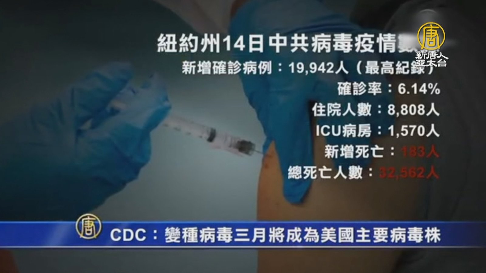 紐約州目前已經發現16例變種中共病毒確診個案,美國疾控中心預計,這種傳染力更強的變種病毒會快速蔓延,可能在3月份,成為美國境內主要的病毒種類。 //asset2.ntdtv.com.tw/public/uploads/assets/2021/01/16/2021-01-16-6002dabf6903e.mp4 中共肺炎|武漢肺炎|美國疫情|防疫|中共病毒|新型冠狀病毒|紐約州|變種病毒2021-01-16 20:22:04