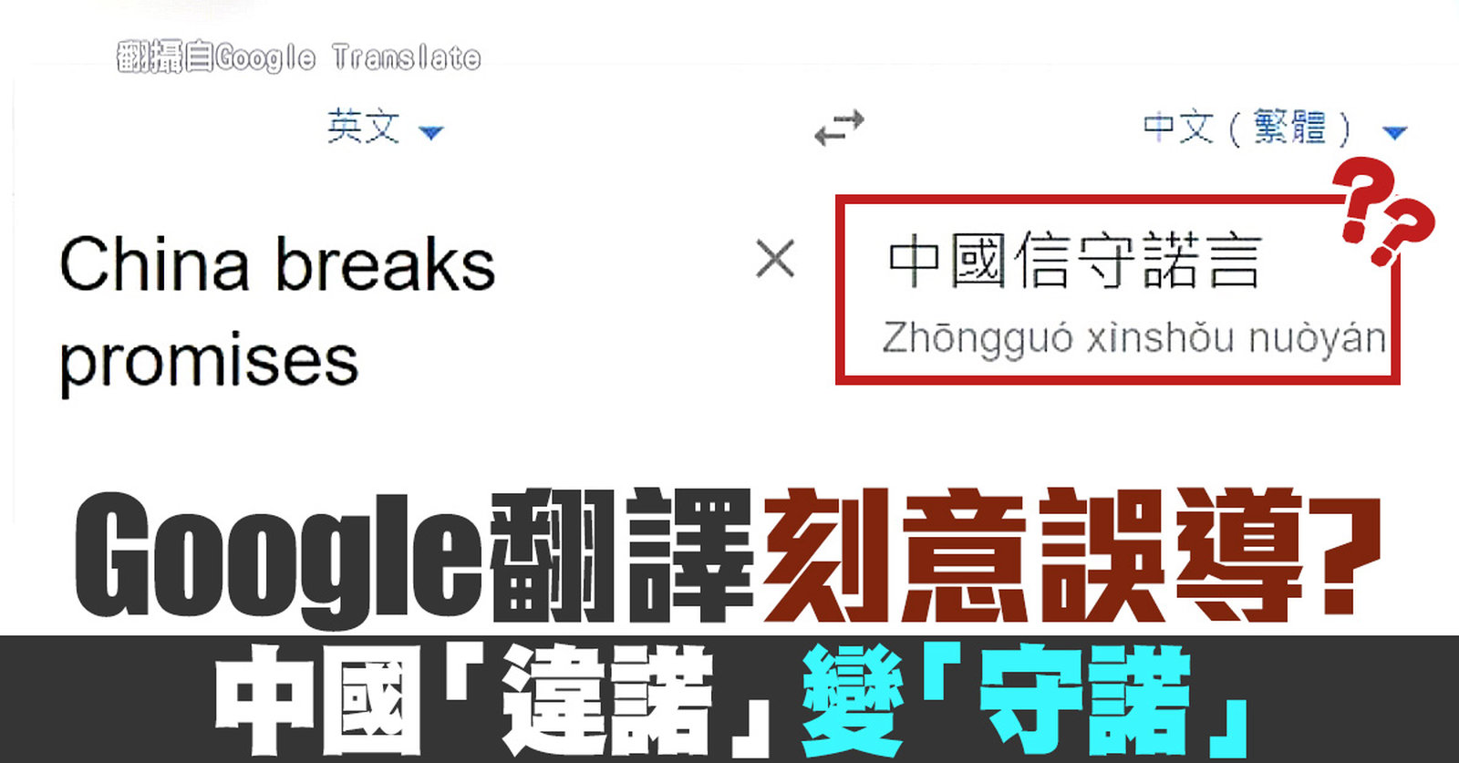 Google翻譯刻意誤導?中國「違諾」變「守諾」|寰宇掃描