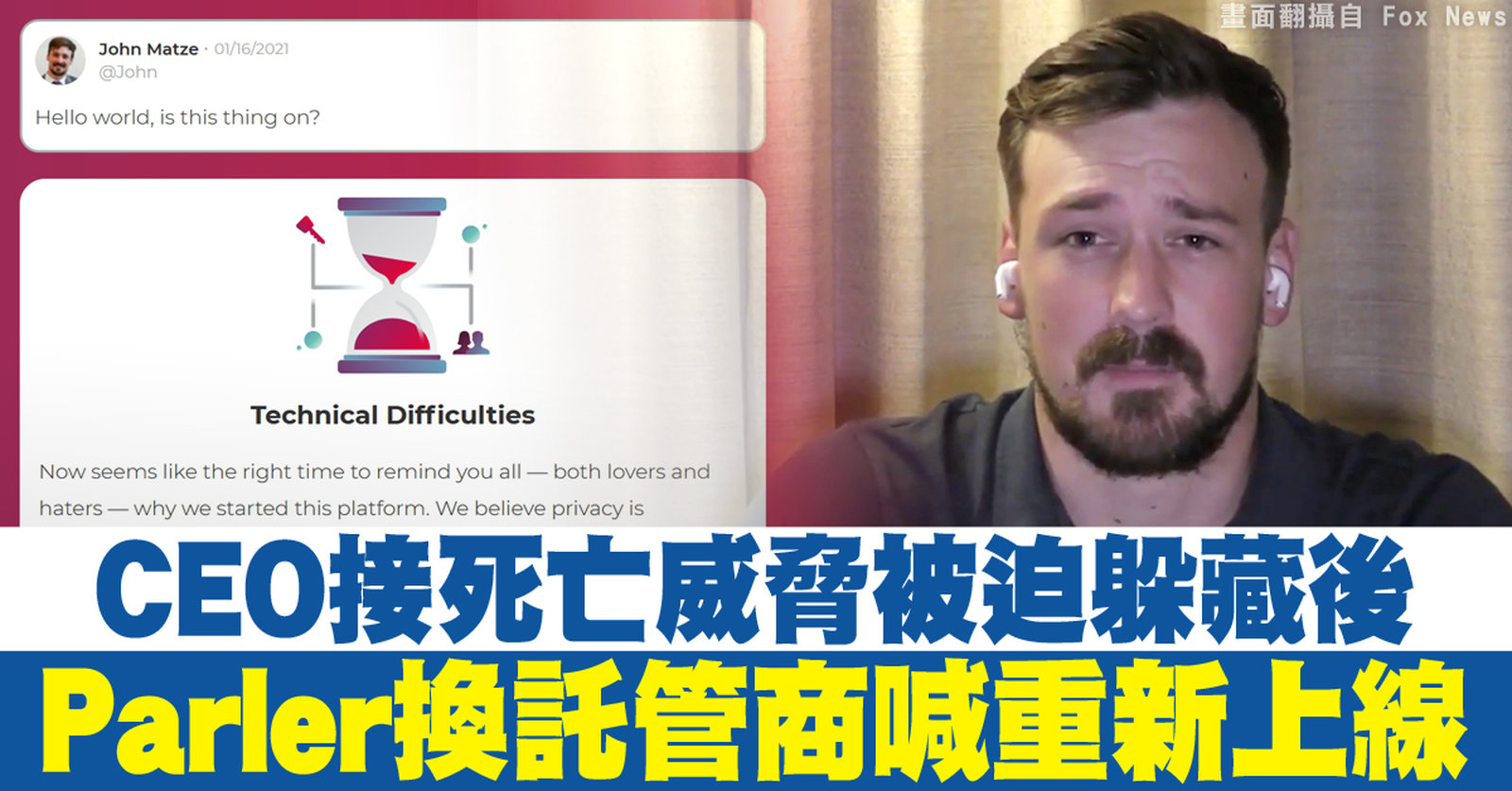 CEO接死亡威脅被迫躲藏後 Parler換託管商喊重新上線