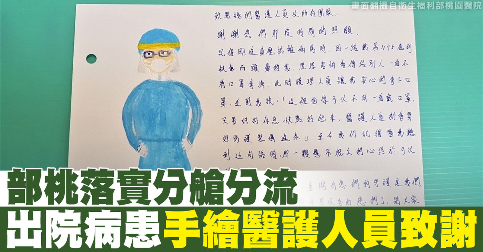 部桃落實分艙分流 出院病患手繪醫護人員致謝