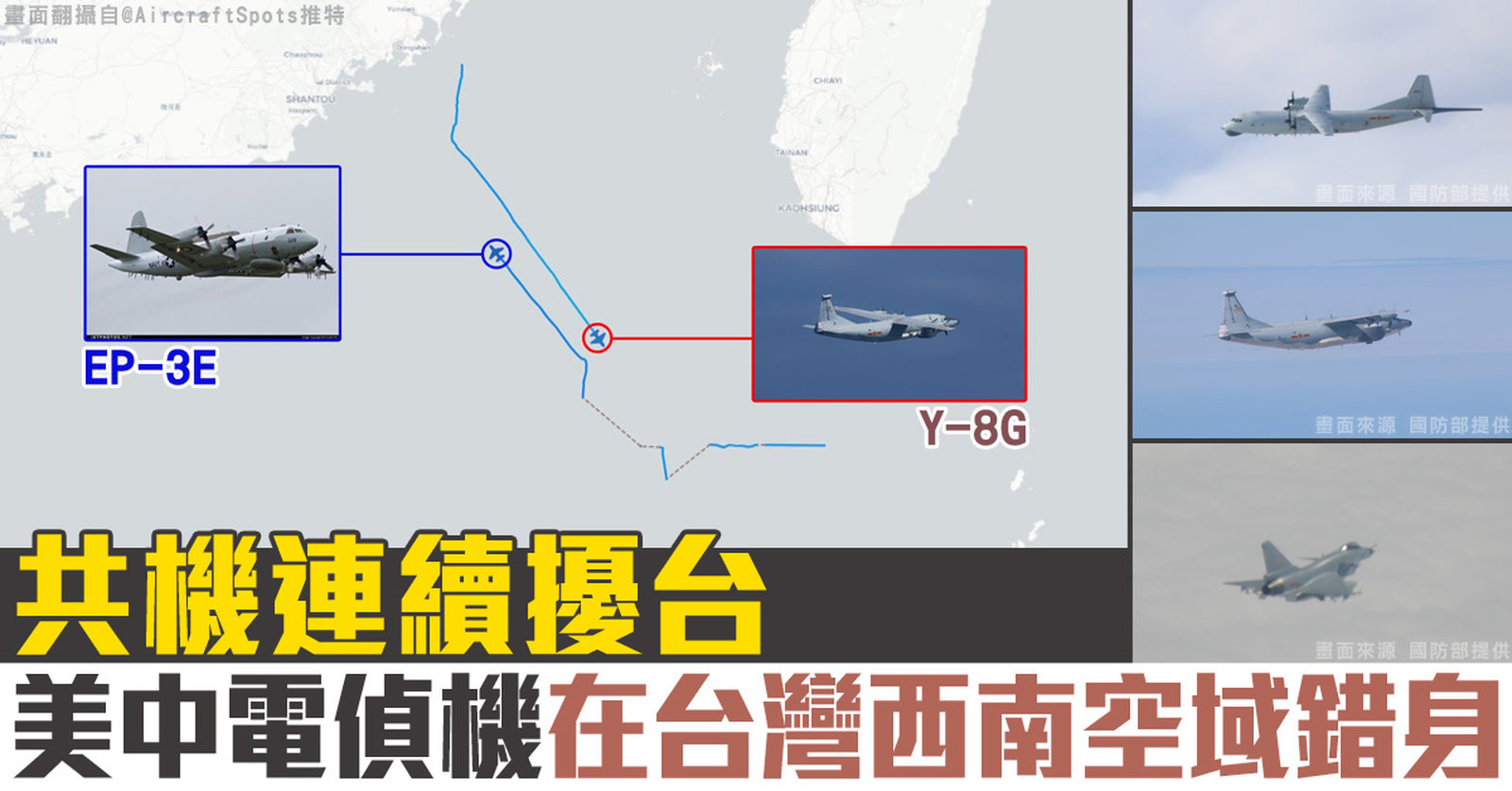 共機連續擾台 美中電偵機在台灣西南空域錯身