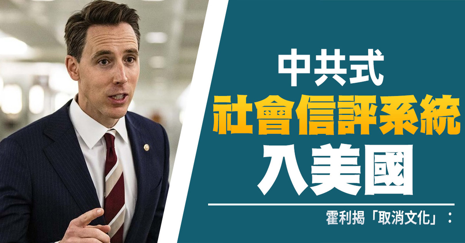 霍利揭「取消文化」:中共式社會信評系統入美國