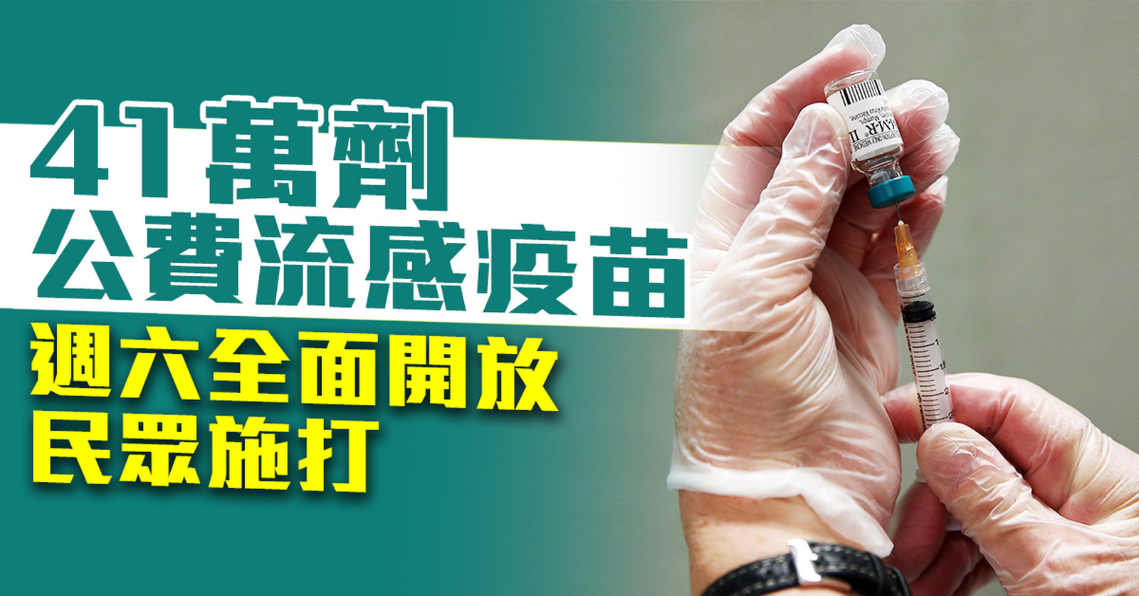 41萬劑公費流感疫苗 週六全面開放民眾施打