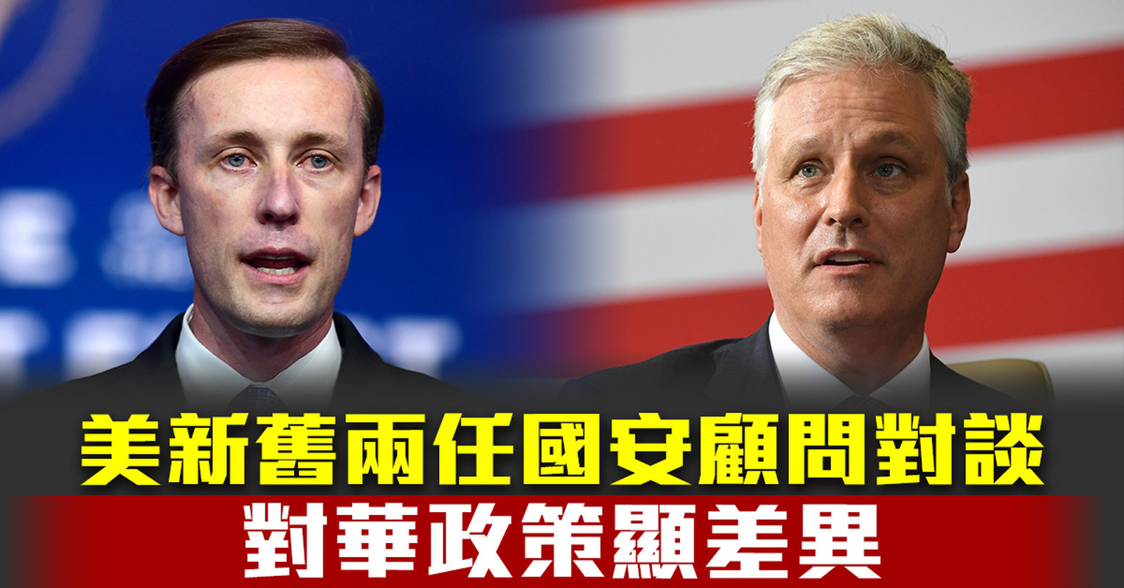 美國新舊任國安顧問昨天參加線上研討會,前任國安顧問歐布萊恩開門見山指出,他們交接給新政府的首要重大問題就是中國問題,儼然是美國的頭號挑戰。而新任國安顧問蘇利文也談到了對中四點政策,並表示美國要採取行動,讓中共在香港與新疆的行動,還有對台灣的武力威脅「付出代價」。 //asset1.ntdtv.com.tw/public/uploads/assets/2021/01/30/2021-01-30-601552a0f05db.mp4 美國安顧問|對中政策|蘇利文|歐布萊恩|中共軍機|共機擾台|香港|新疆|美國和平研究所2021-01-30 22:41:48
