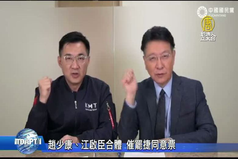 國民黨主席江啟臣與媒體人趙少康合體,力挺罷免黃捷案,呼籲選民投下同意票。同時也借由同框,破除兩人有嫌隙的傳聞。 //asset3.ntdtv.com.tw/public/uploads/assets/2021/02/05/2021-02-05-601d3ca99d5ec.mp4 2021-02-05 20:39:37