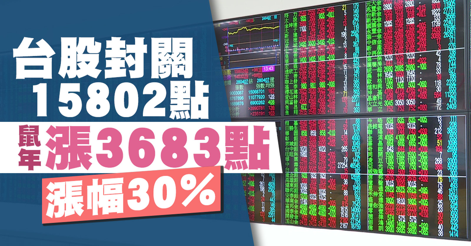台股封關15802點 鼠年漲3683點 漲幅30%