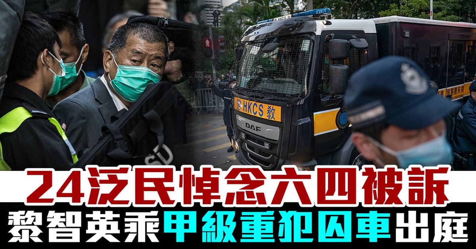 24泛民悼念六四被訴 黎智英乘甲級重犯囚車出庭