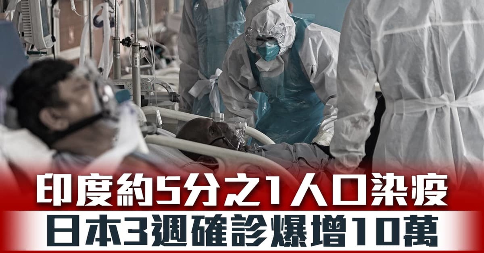印度約5分之1人口染疫 日本3週確診爆增10萬