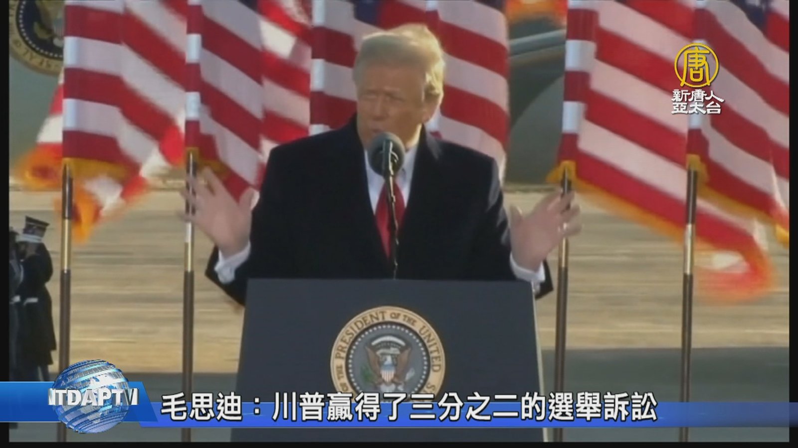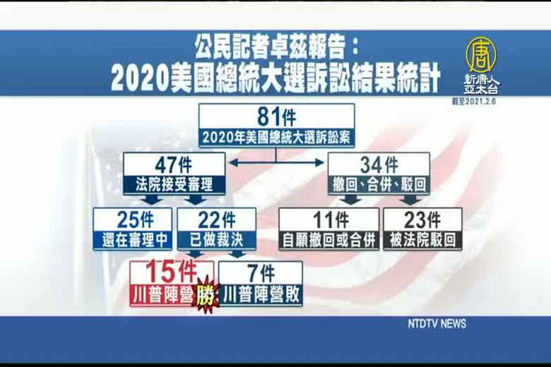 美國一群由科學家和工程師組成的志工團隊,追蹤分析了2020年美國總統大選,關於選舉公正性的所有訴訟。由物理學家卓茲在日前發布報告,報告指出,法院審理並根據案情作出裁決的22起案件中,川普陣營總共在15起案件中獲得勝訴。美國人口研究所主席毛思迪,引用該報告數據,撰文批評美國主流媒體和科技巨頭,散播錯誤選舉訴訟結果給閱聽大眾。 //asset2.ntdtv.com.tw/public/uploads/assets/2021/02/08/2021-02-08-6021357b9dc4a.mp4 2020美國大選|選舉舞弊|選舉詐欺|選舉訴訟|川普|拜登|毛思迪|最高法院2021-02-09 13:24:31