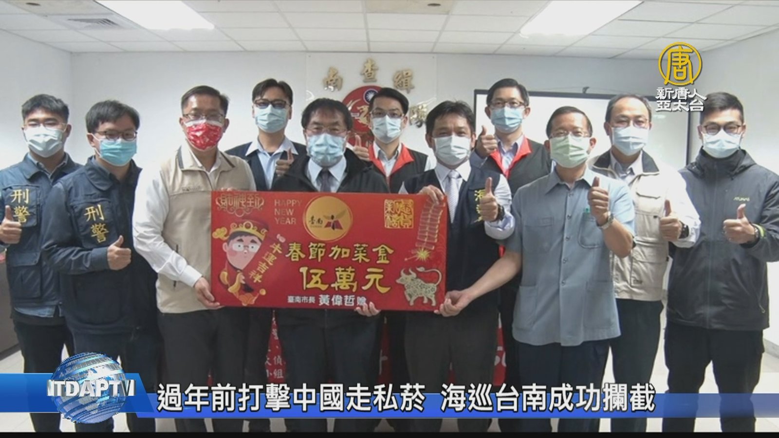 中國新年將至,海巡署加大力度打擊邊境不法走私。於1月28日凌晨在台南市查獲一部大型貨車,載運中國未稅私菸合計395箱15條(19萬7,650包),台南市長黃偉哲聞訊也前往慰問破案相關單位人員,感謝他們的辛勞。 //asset3.ntdtv.com.tw/public/uploads/assets/2021/02/08/2021-02-08-602139ee26ede.mp4 走私|香菸|過年|海巡署|黃偉哲|台南2021-02-08 21:16:17