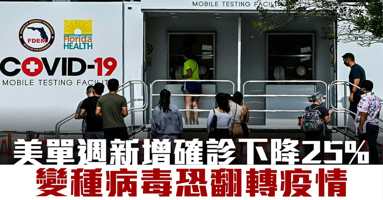 美單週新增確診下降25% 變種病毒恐翻轉疫情
