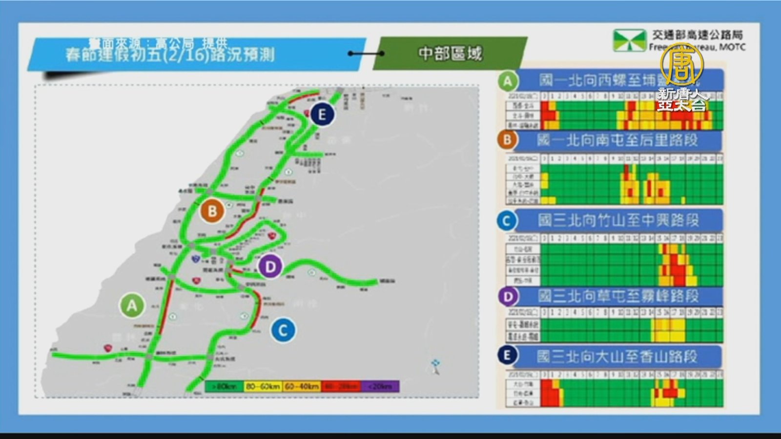 新聞一開始,先來看到,今天(2月16日)是大年初五,也是過年連假最後一天,國道從上午開始湧現收假的北返車潮,還好目前車流都陸續緩解,僅剩國道三號南投段持續壅塞,時速不到20公里。不過,上午的國道5號,部分路段仍出現紫爆情況,坪林車速甚至只剩10公里左右。下午則是要等到出了雪隧,才能恢復正常速度,高公局傍晚宣布,因國道5號北上車流量減少,各入口匝道均無回堵,北向蘇澳至頭城入口高乘載管制,提前在傍晚18時30分解除。 //asset1.ntdtv.com.tw/public/uploads/assets/2021/02/16/2021-02-16-602bb6632b610.mp4 大年初五|車潮|國五|國道|塞車|紫爆|高工局|坪林2021-02-16 20:09:15