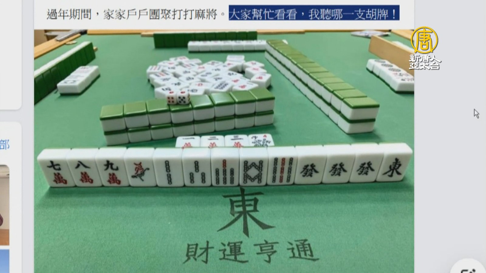 國民黨主席江啟臣,過年期間全台拜廟走透透,但話題始終離不開黨揆之戰,前天2月14日晚上朱立倫和侯友宜的聚會照,還有昨天(15日)下午朱立倫臉書PO出的麻將照,朱立倫手中有一副好牌,就等著聽「東」,朱立倫還問大家,「猜猜我聽哪支牌?」,被解讀為「只欠東風」,話中有話。 //asset1.ntdtv.com.tw/public/uploads/assets/2021/02/16/2021-02-16-602bc4c2b0409.mp4 朱立倫|只欠東風|江啟臣|萊豬公投|連署2021-02-16 21:08:03