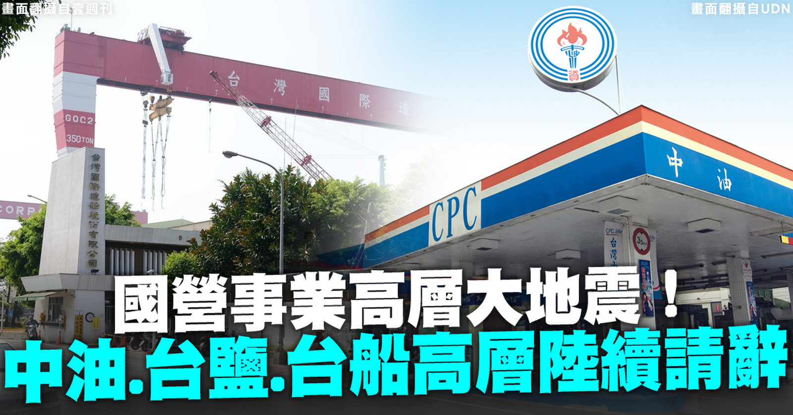 國營事業高層大地震!中油.台鹽.台船高層陸續請辭