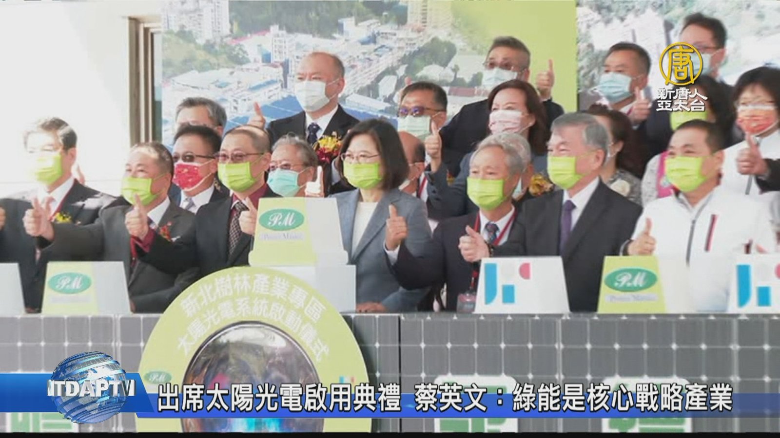 再來看到,政府拚綠能,總統蔡英文前往新北樹林,出席企業啟用太陽光電系統典禮,蔡英文表示,綠能是國家核心戰略產業,使用綠電已成國際趨勢,也關乎產業競爭力,政府會協助企業一起達到使用綠電的目標,保持MIT產品優勢。 //asset1.ntdtv.com.tw/public/uploads/assets/2021/02/23/2021-02-23-6034f5b791f6e.mp4 蔡英文|綠電|太陽光電|全球傳動科技2021-02-23 20:28:28