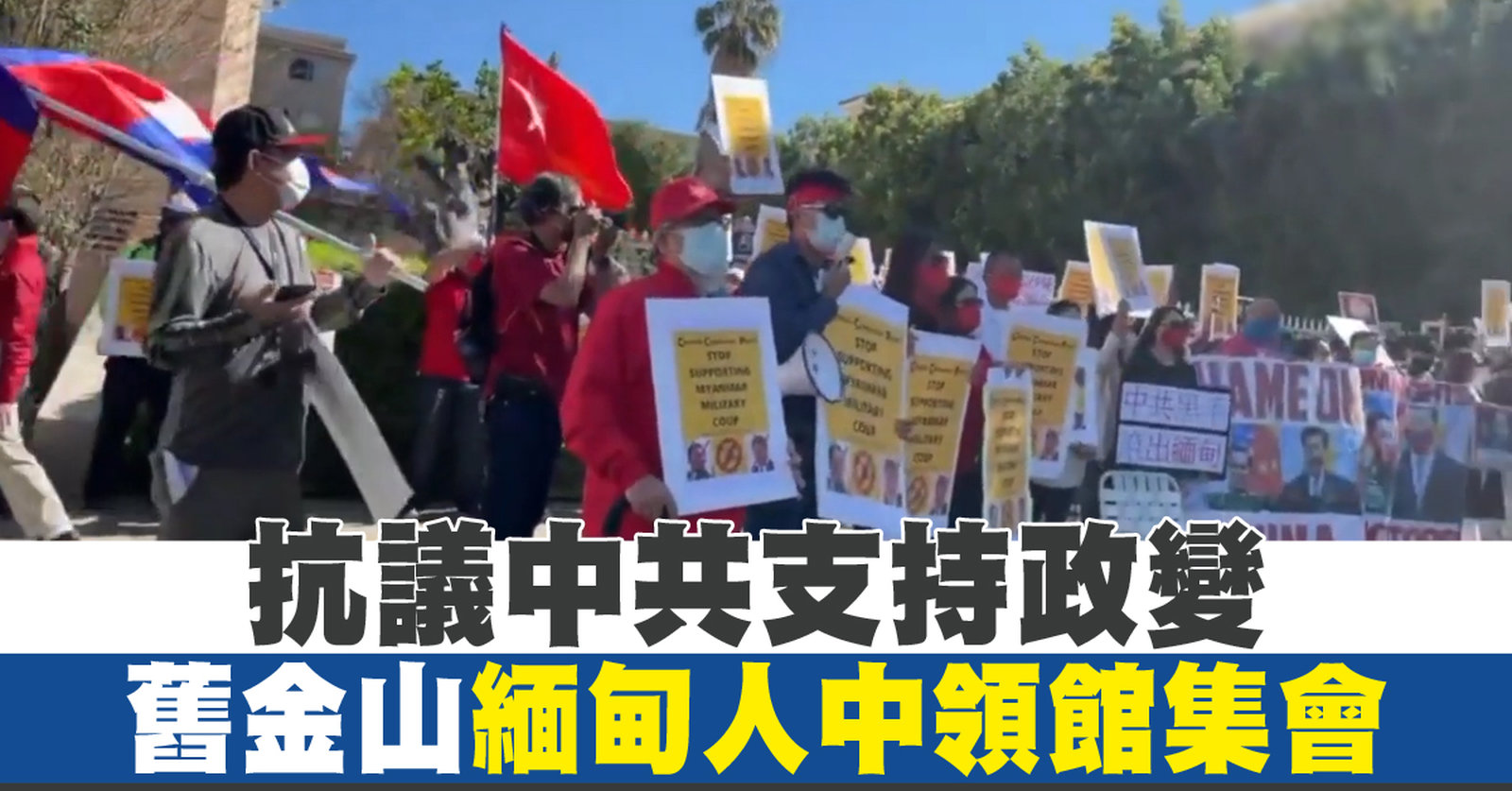 抗議中共支持政變 舊金山緬甸人中領館集會