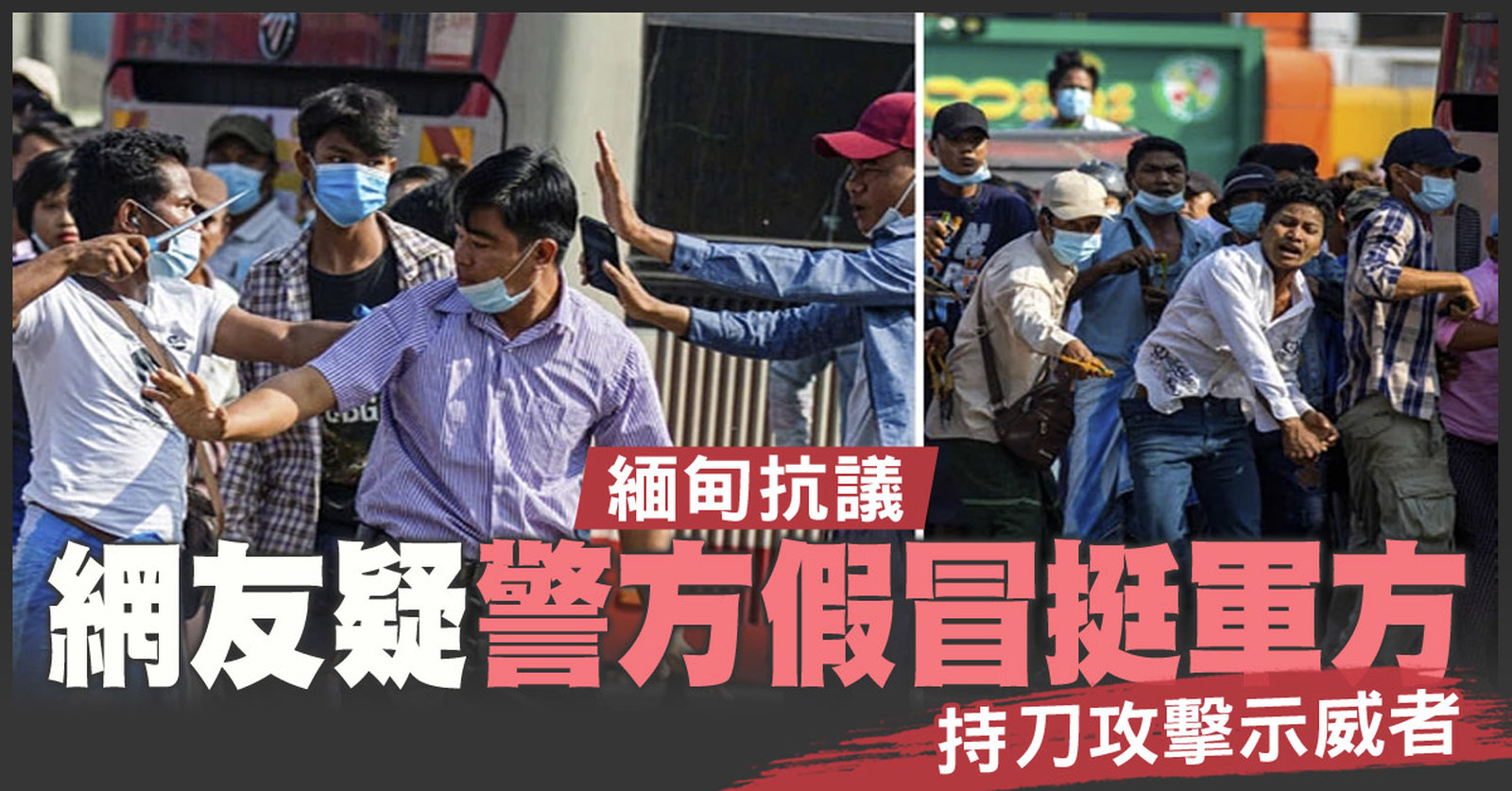 緬甸抗議 網友疑警方假冒挺軍方 持刀攻擊示威者