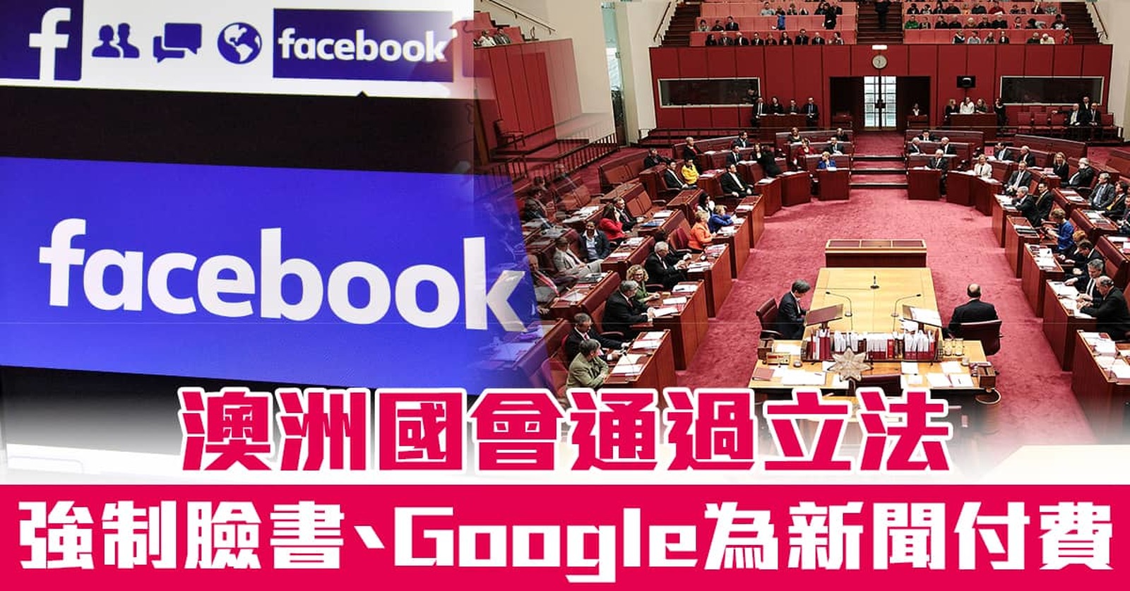 澳洲國會通過立法 強制臉書、Google為新聞付費