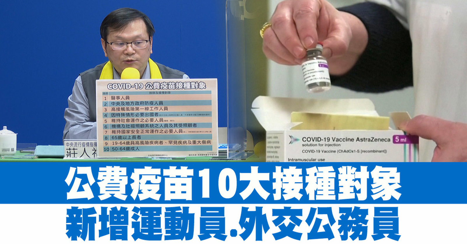 公費疫苗10大接種對象 新增運動員.外交公務員