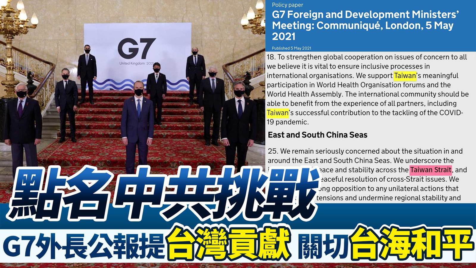 批中共霸凌!G7外長公報挺台進WHO 關切台海和平