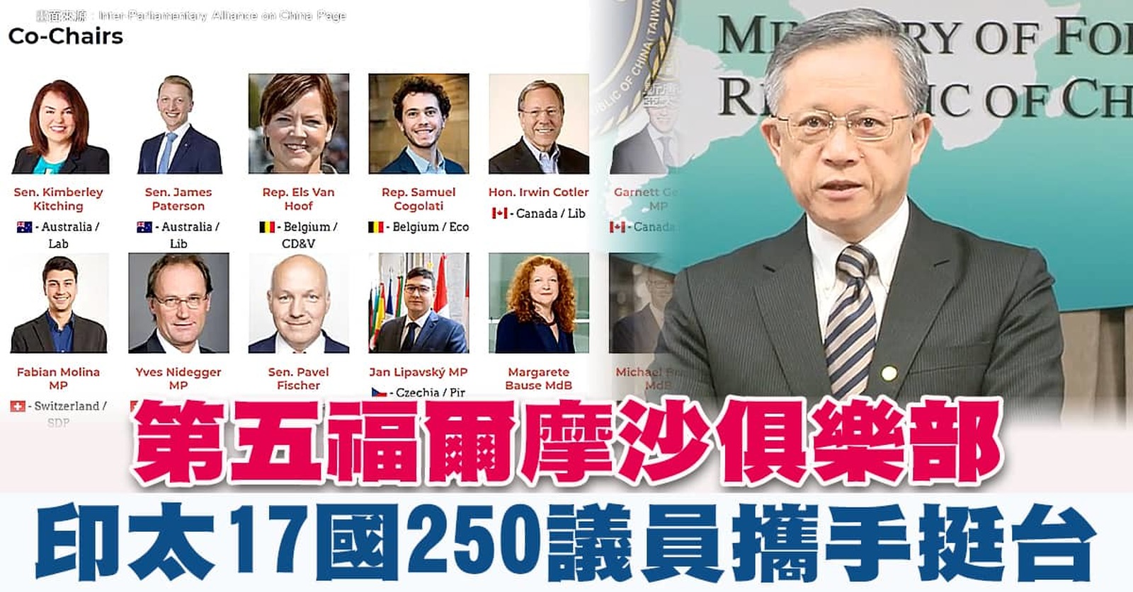 第五福爾摩沙俱樂部 印太17國250議員攜手挺台