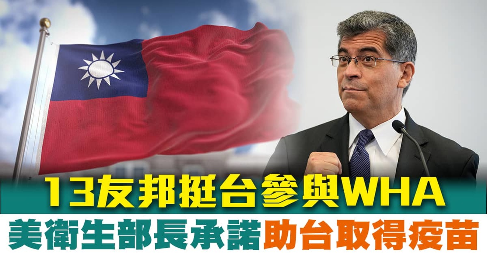 13友邦挺台參與WHA 美衛生部長承諾助台取得疫苗