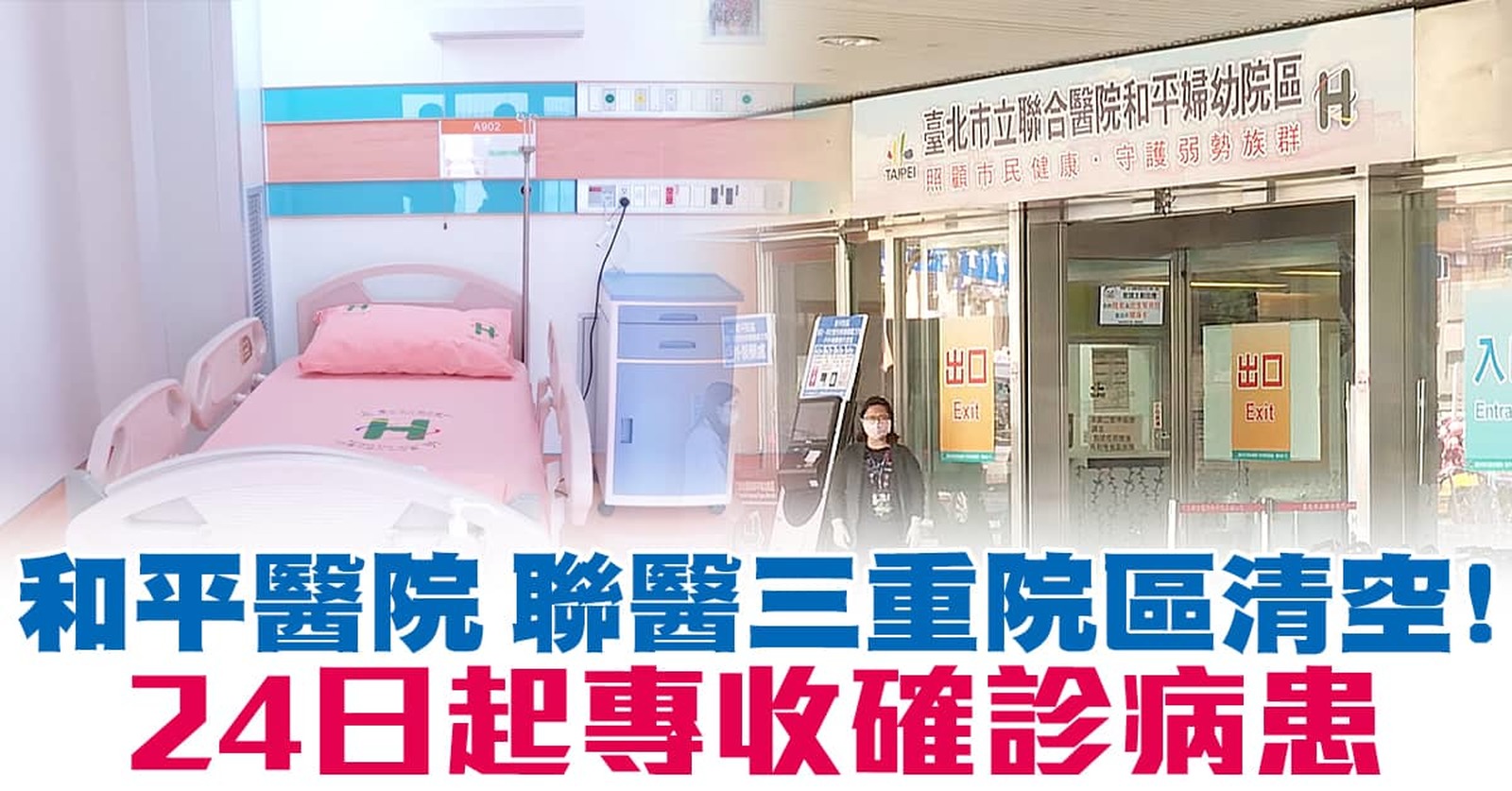和平醫院.聯醫三重院區清空!24日起專收確診病患