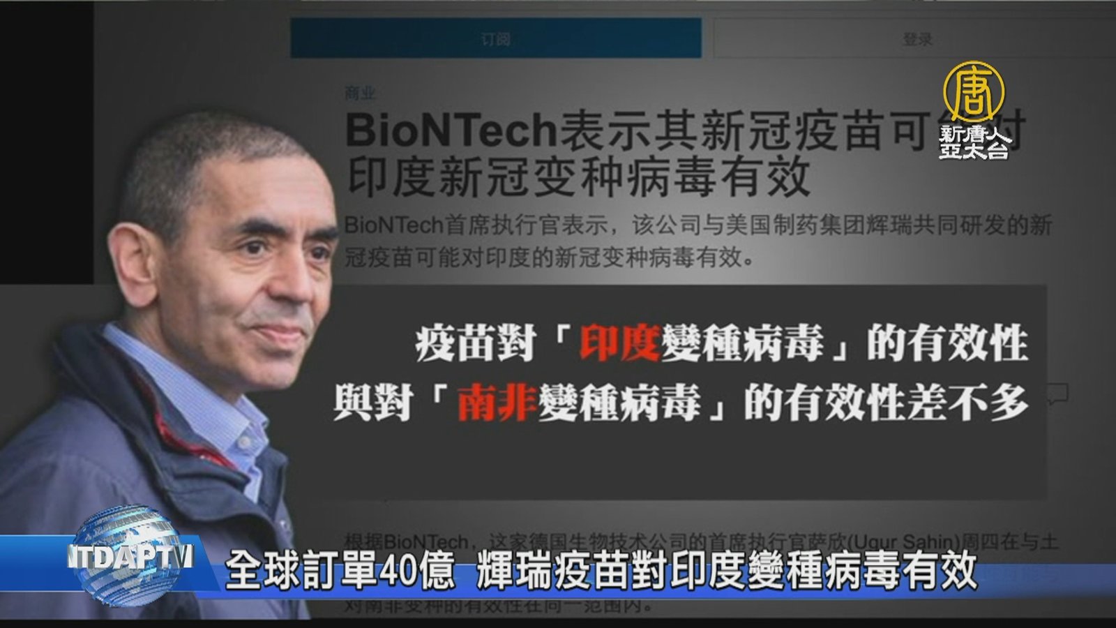 全球訂單40億 輝瑞疫苗對印度變種病毒有效