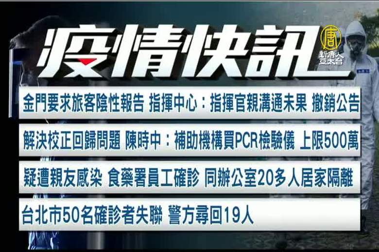 金門縣政府(23日)昨天公告,搭機到金門的旅客必須提出3天內的陰性報告,否則就必須配合快篩,不過,指揮中心認為不符程序,依法撤銷公告,指揮官陳時中(24日)表示,用意是好的,但方法不理想,會再和專家研議,訂定一個快篩指引。 //asset2.ntdtv.com.tw/public/uploads/assets/2021/05/24/2021-05-24-60aba4e151594.mp4 金門|快篩|中共肺炎|武漢肺炎|疫情|防疫|中共病毒|新型冠狀病毒2021-05-24 21:05:23