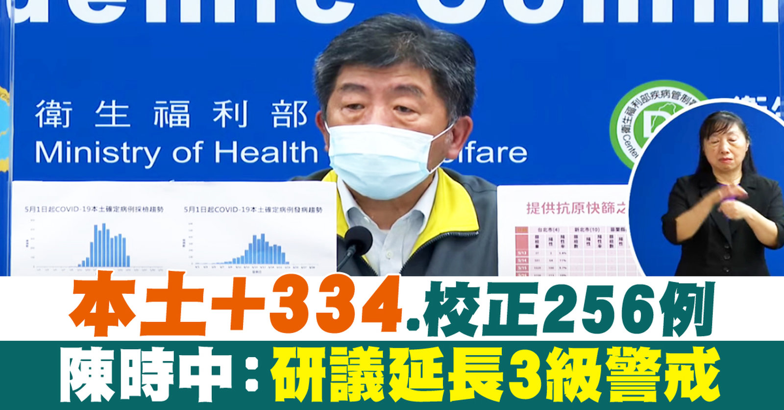 本土+334.校正256例 陳時中:研議延長3級警戒