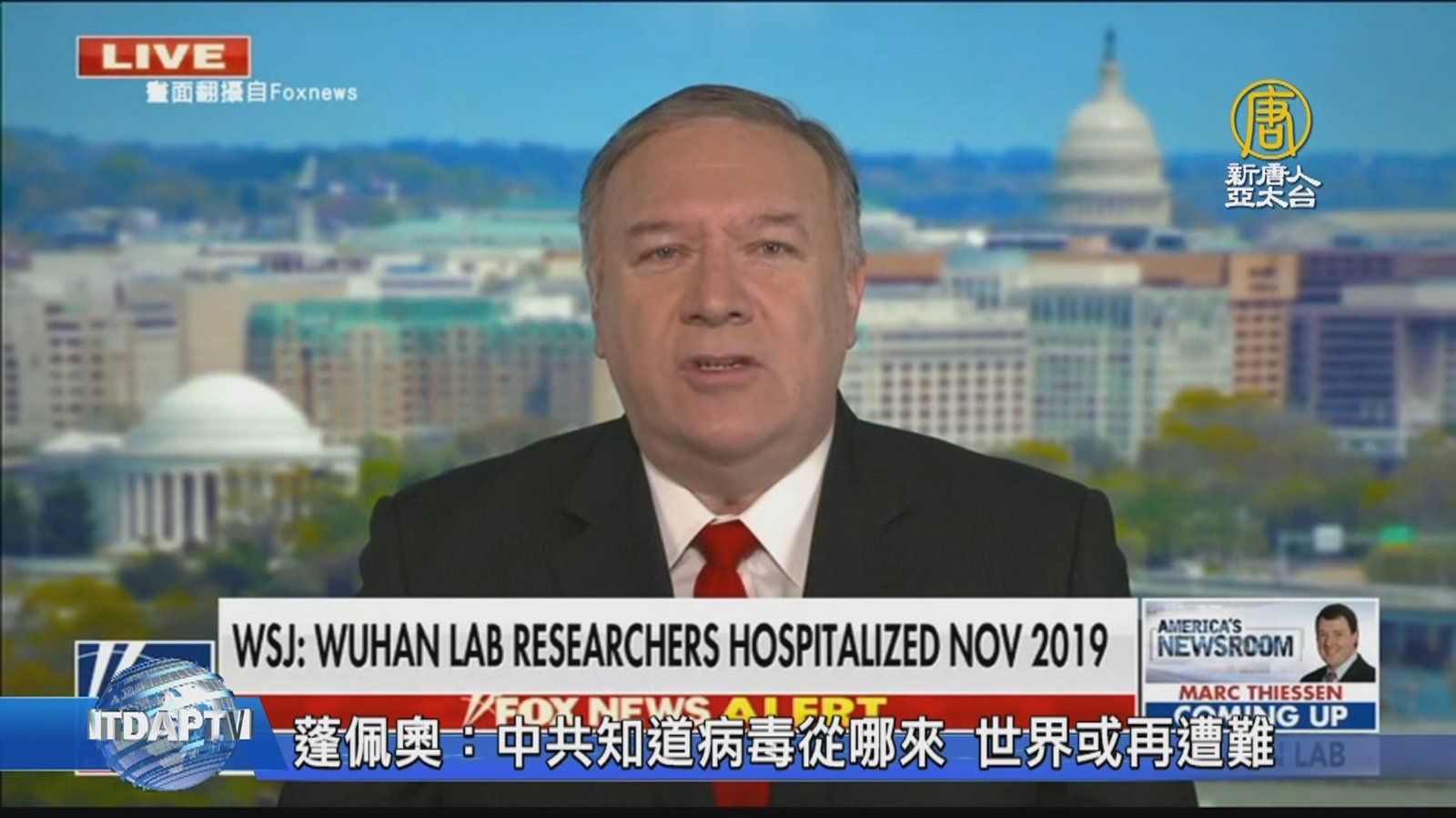美國情報報告披露,中共武漢病毒研究所三名人員,2019年11月出現嚴重病情到醫院治療。美國前國務卿蓬佩奧24日接受FOX訪問表示,中共清楚病毒在哪裏開始,而現在中方仍在實驗室進行研究,世界最終可能再次遭遇類似災難。他再喊話,美國有責任要求中共坦白披露病毒來源,並說美國有很多辦法讓中共付出代價。 //asset1.ntdtv.com.tw/public/uploads/assets/2021/05/25/2021-05-25-60acf2e6cd850.mp4 新冠肺炎|中共病毒|起源|實驗室|武漢|蓬佩奧2021-05-25 20:49:12