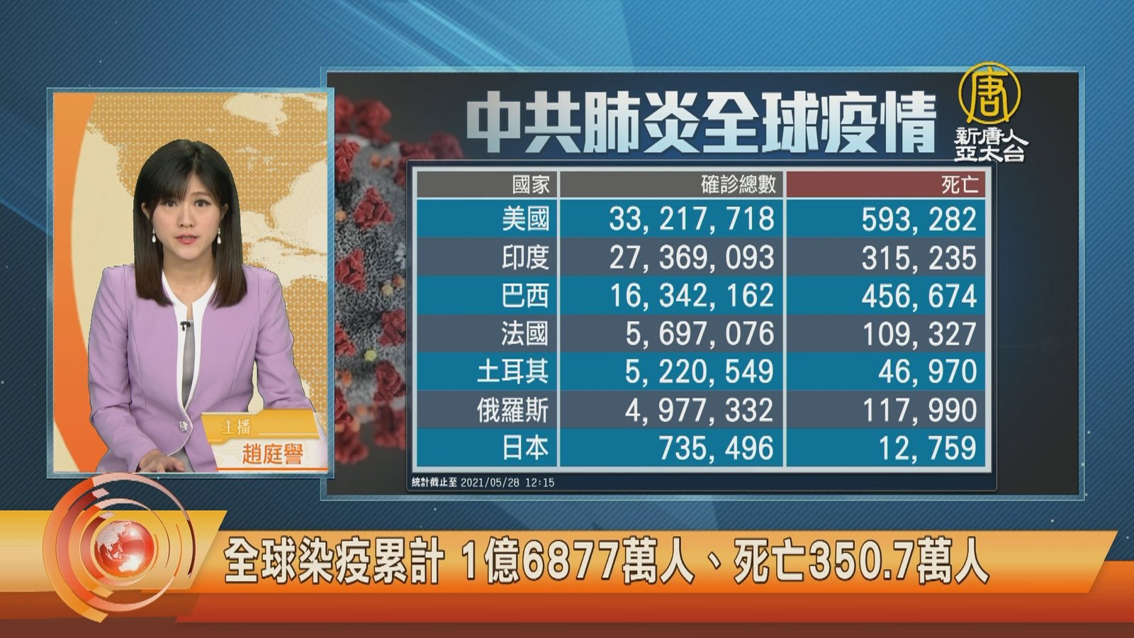 好,來看到中共肺炎疫情的最新情況,全球確診超過1億6千898萬人,死亡3百51萬1千多人。但中共、伊朗等國家,被認為嚴重低報數據。世界衛生組織也表示,全球直接或間接因疫情死亡的人數可能遭「嚴重低估」,恐怕比官方通報的數字高出2到3倍。亞洲方面,印度單日新增確診超過18萬6千例,死亡增加3千6百多人。日本10都道府縣實施「緊急事態宣言」,東京等9地確定延長到6月20日。香港連兩天零確診,不過衛生當局宣布,由於疫苗接種率低,為了嚴防疫情反彈,延長「限聚令」、「口罩令」等防疫措施到6月9日。歐洲方面,英國近期的 //asset1.ntdtv.com.tw/public/uploads/assets/2021/05/28/2021-05-28-60b0e2d116fba.mp4 印度|確診|印度變種病毒|B.1.617.2|日本|緊急事態宣言|香港|零確診|英國|中共肺炎|武漢肺炎|疫情|防疫|中共病毒|新型冠狀病毒2021-05-28 20:31:12