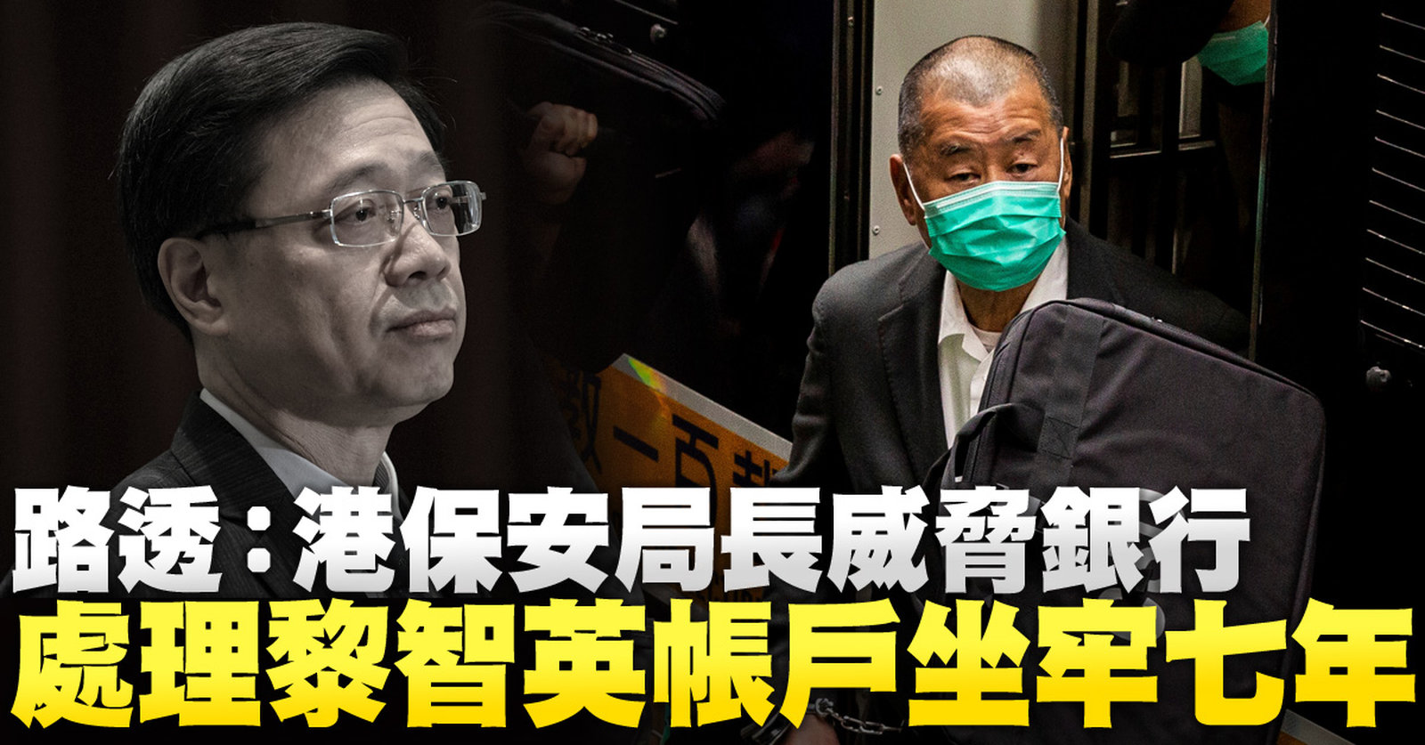 路透:港保安局長威脅銀行 處理黎智英帳戶坐牢七年