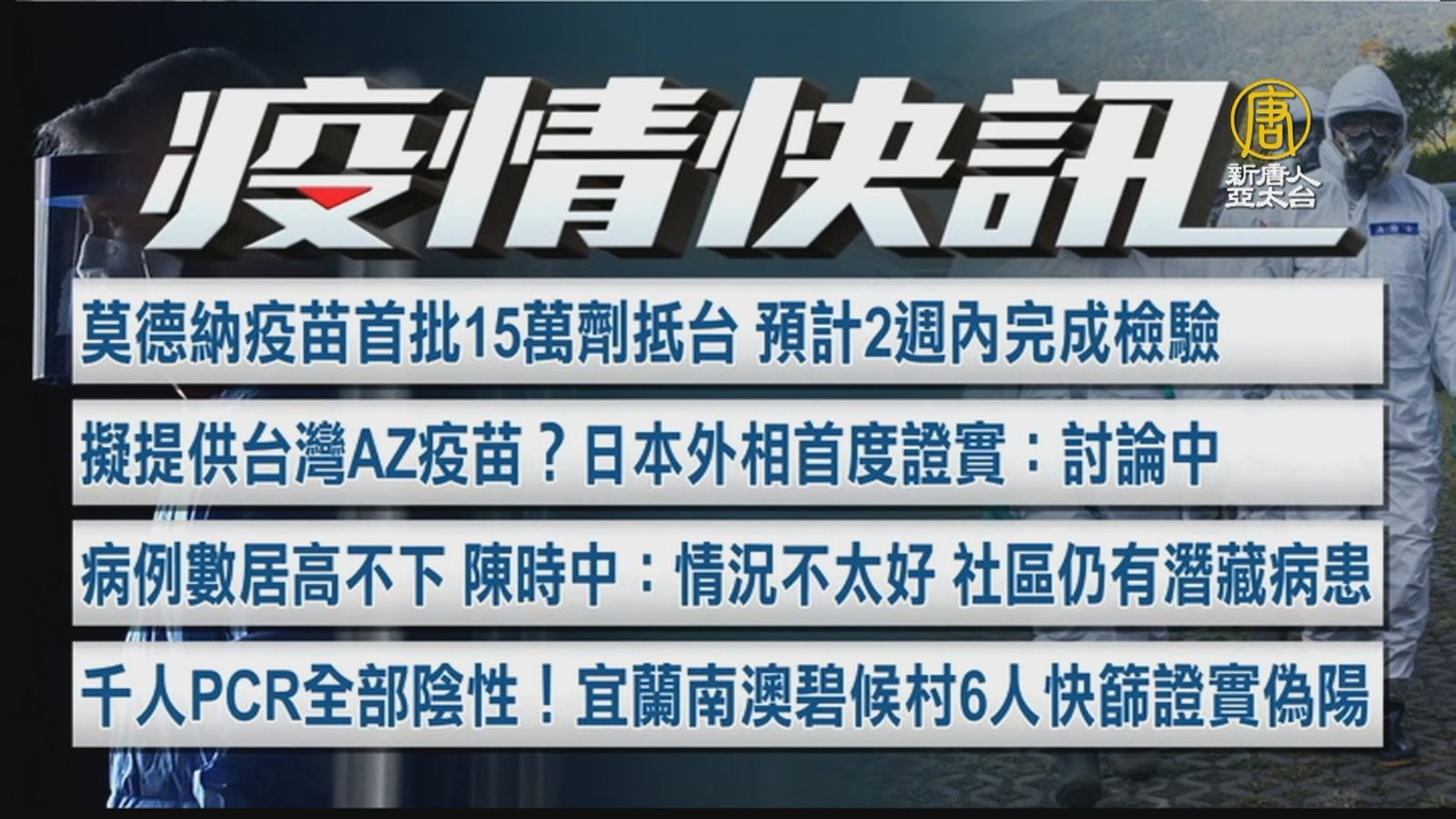 來看今天的台灣疫情焦點:莫德納疫苗首批15萬劑已經抵台,預計2週內完成檢驗。擬提供台灣AZ疫苗?日本外相首度證實:討論中。病例數居高不下,陳時中說:情況不太好,社區仍有潛藏病患。宜蘭縣今天零確診,也沒有校正回歸案例,宜蘭南澳碧候村千人PCR全部陰性。 //asset3.ntdtv.com.tw/public/uploads/assets/2021/05/28/2021-05-28-60b0df4097c01.mp4 莫德納疫苗|AZ疫苗|日本外相|陳時中|PCR|宜蘭|南澳碧候村|中共肺炎|武漢肺炎|疫情|防疫|中共病毒|新型冠狀病毒2021-05-28 20:13:24